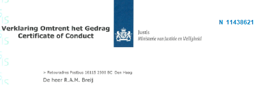 Ministerie van Justitie en Veiligheid afgegeven VOG-verklaring.